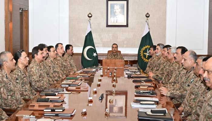 انٹر سروسز پبلک ریلیشنز (آئی ایس پی آر) کے مطابق آرمی چیف جنرل سید عاصم منیر کی زیر صدارت 267ویں کور کمانڈرز کانفرنس ہوئی۔آئی ایس پی آر کے مطابق فورم نے بھارتی فوجی قیادت کے حالیہ اشتعال انگیز بیانات کا بھی سخت نوٹس لیا۔ کانفرنس نے بھارتی فوجی قیادت کے بیانات کو غیر ذمہ دارانہ اور علاقائی استحکام کےلیے نقصان دہ قرار دیا۔فورم نے درپیش خطرات کا مفصل جائزہ لیا، علاقائی اور داخلی سلامتی کے منظر نامے پر روشنی ڈالی۔ شرکاء کانفرنس نے ایل او سی اور ورکنگ باؤنڈری کے ساتھ موجودہ صورتحال پر تبادلہ خیال کیا۔فورم نے بھارت کے مقبوضہ جموں و کشمیر میں انسانی حقوق کی مسلسل خلاف ورزیوں کی شدید مذمت کرتے ہوئے کہا کہ بھارت کی مقبوضہ کشمیر میں انسانی حقوق کی خلاف ورزیاں خطے کے امن اور استحکام کےلیے ایک سنگین خطرہ ہیں۔اس موقع پر آرمی چیف نے کہا کہ پاکستان آرمی ملکی خود مختاری اور سالمیت کے دفاع کےلیے پوری طرح تیار ہے۔ بھارتی فوج کے یہ کھوکھلے بیانات ان کی بڑھتی ہوئی مایوسی کی نشاندہی کرتے ہیں۔ کسی بھی مہم جوئی کا پاکستان مکمل طاقت کے ساتھ جواب دے گا۔آرمی چیف کا کہنا تھا کہ عسکری قیادت قابلِ فخر عوام کی بھرپور حمایت سے اپنی آئینی ذمہ داریاں پورا کرنے کےلیے پُرعزم ہے۔انہوں نے کہا کہ بھارتی فوج کے اس قسم کے بیانات اپنے عوام اور عالمی برادری کی توجہ اندرونی خلفشار سے توجہ ہٹانے کےلیے ہیں، بھارتی فوج کے اس قسم کے بیانات اُس کی انسانی حقوق کی کھلی خلاف ورزیوں سے توجہ ہٹانے کےلیے ہیں۔جنرل عاصم منیر کا کہنا تھا کہ عسکری قیادت قوم کو درپیش کثیرالجہتی چیلنجز سے مکمل طور پر آگاہ ہے۔شرکاء کانفرنس نے کشمیری عوام کے حق خودارادیت کےلیے ان کی جدوجہد میں پاکستان کی غیر متزلزل حمایت کا اعادہ کیا جبکہ اقوام متحدہ کی قراردادوں کی مسلسل خلاف ورزیوں سے نمٹنے کےلیے بین الاقوامی تعاون کی اہمیت پر زور دیا۔فورم نے بلوچستان میں عوام کی سماجی و اقتصادی ترقی کے اقدامات تیز کرنے کی ضرورت پر زور دیا۔